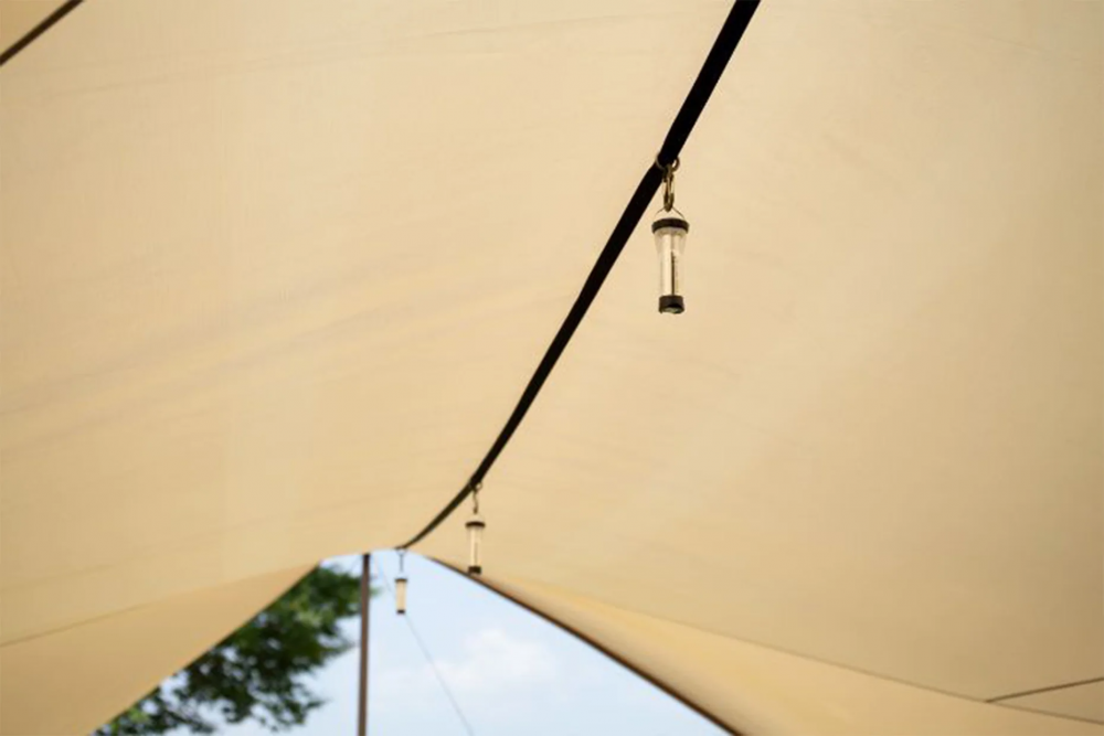 延长带也可以作为营灯挂绳来使用。将延长带搭在两根主杆之间,可利用自带的3个挂环来悬挂营灯。