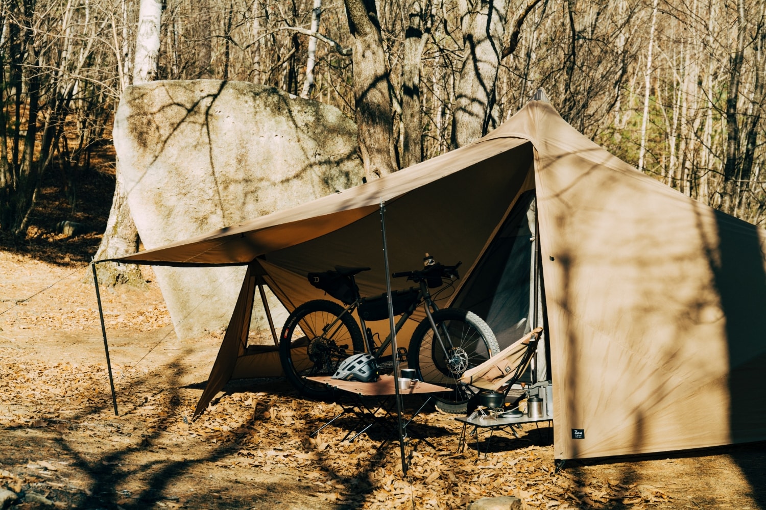 可以根據(jù)環(huán)境及風格喜好,隨意調(diào)整帳篷的開合方式。適合單人及雙人露營的小型單桿帳。