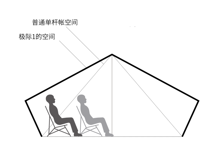 单杆帐最大的缺点是可利用空间小,所以增加侧杆的设计极大地解决了这一问题。双人用餐时即使面对面落座,也可以享受既舒适又宽敞的二人空间。