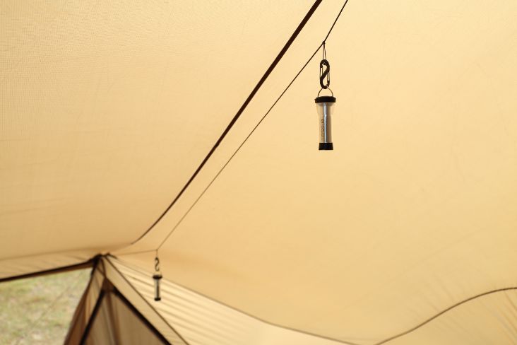 帐顶内部预留了可固定挂绳的专用吊环,方便悬挂营灯等物品。
