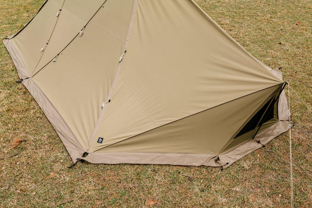 帐底周围配备防风裙,能够防止外部的冷空气进入。为了防止与地面接触的部分被轻易弄脏,防风裙采用易清洁的聚酯纤维材质。