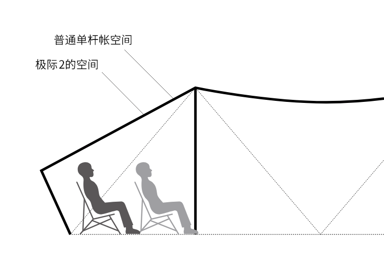 金字塔帐最大的缺点是可利用空间小,所以增加侧杆的设计极大地解决了这一问题。多人用餐时即使面对面围座,也可以享受既舒适又宽敞的空间。