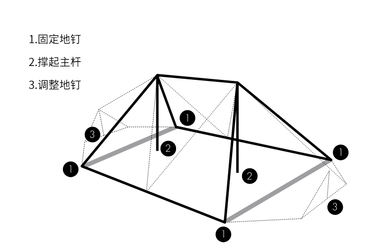 只需利用定位带先将帐底四个角固定成长方形,然后使用主杆撑起帐顶,便能够轻松的搭建起来。帐底为变形8边形,设营简单易上手。