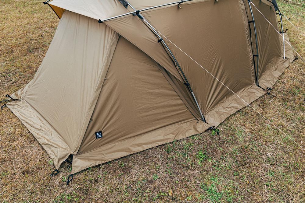 后室部分为向后突出的屋檐式设计,雨水不易淋入,并且附有网纱。本体与内帐的网纱位置为对应设计,可轻松调整帐内通风程度。