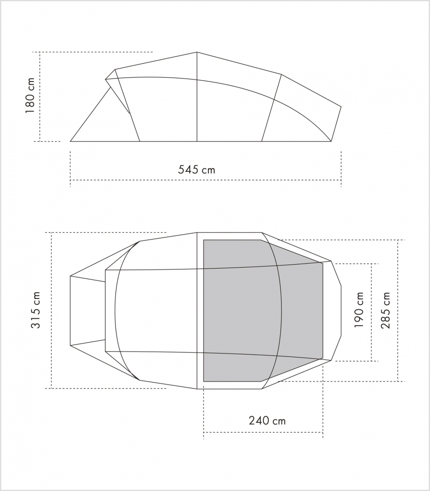 内帐为可容纳4位成年人睡眠的尺寸。前厅部分虽然无法满足4人休闲所需,但仍保留了一定的空间来享用一杯晨起浓香咖啡的早餐时光。