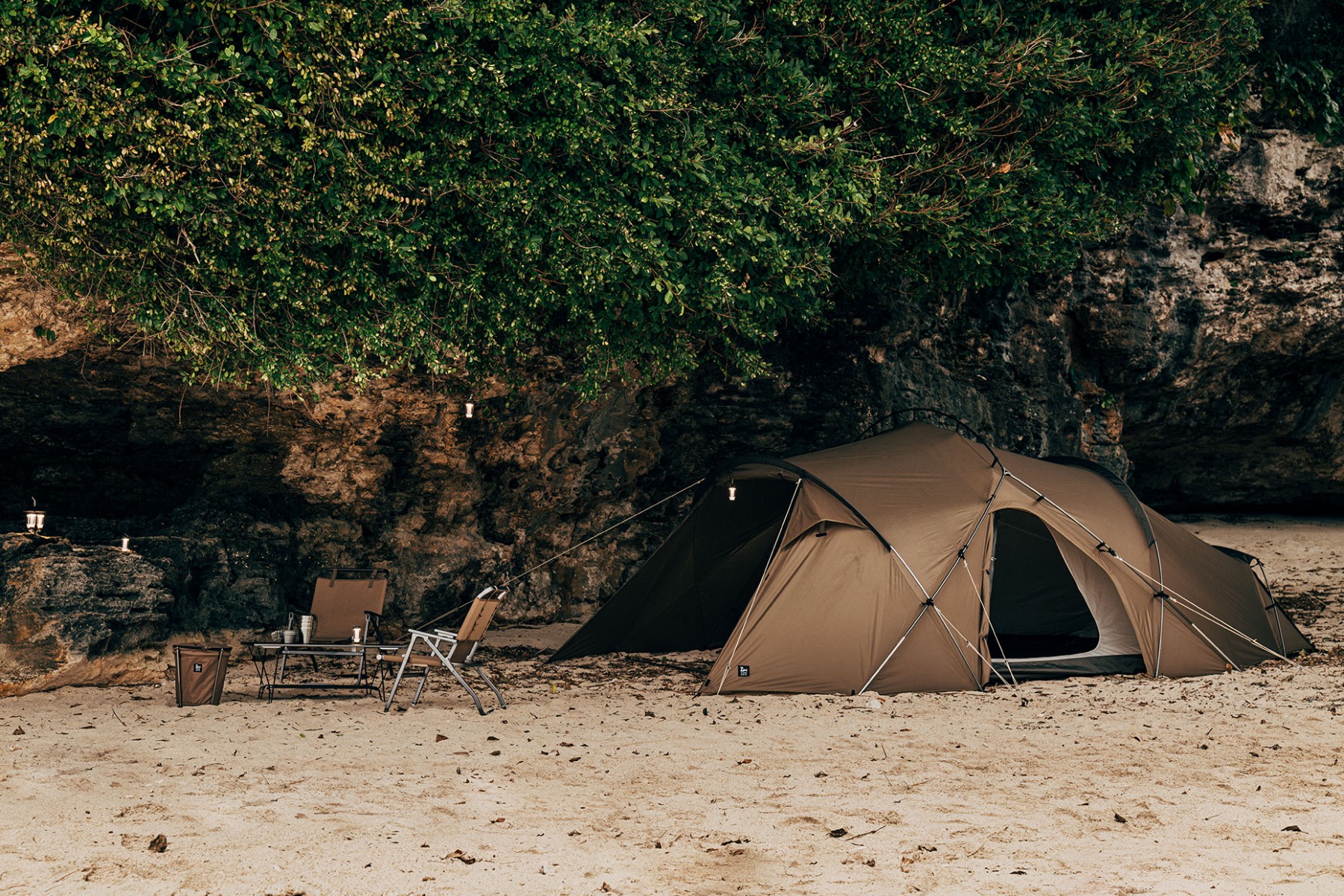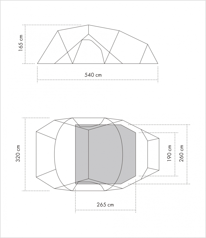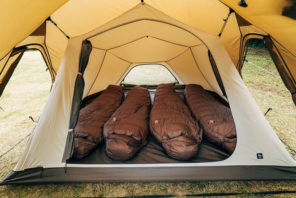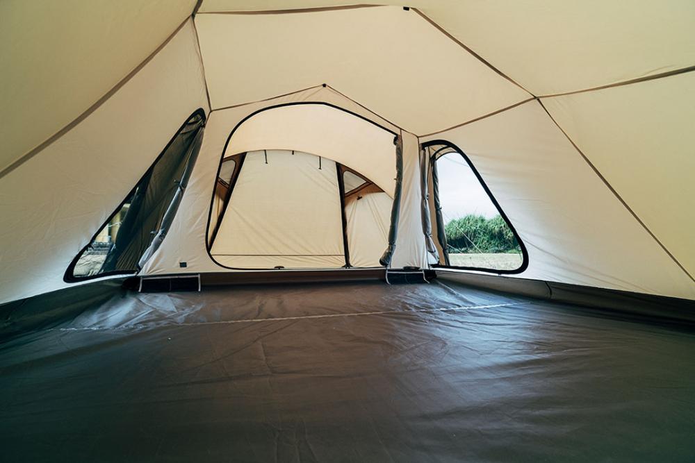 可容纳四个成人同时就寝的宽敞空间。同时有充足的空间放置行李物品。由于四面皆配备网纱,即使在炎热的夏季也能保持帐内凉爽舒适。