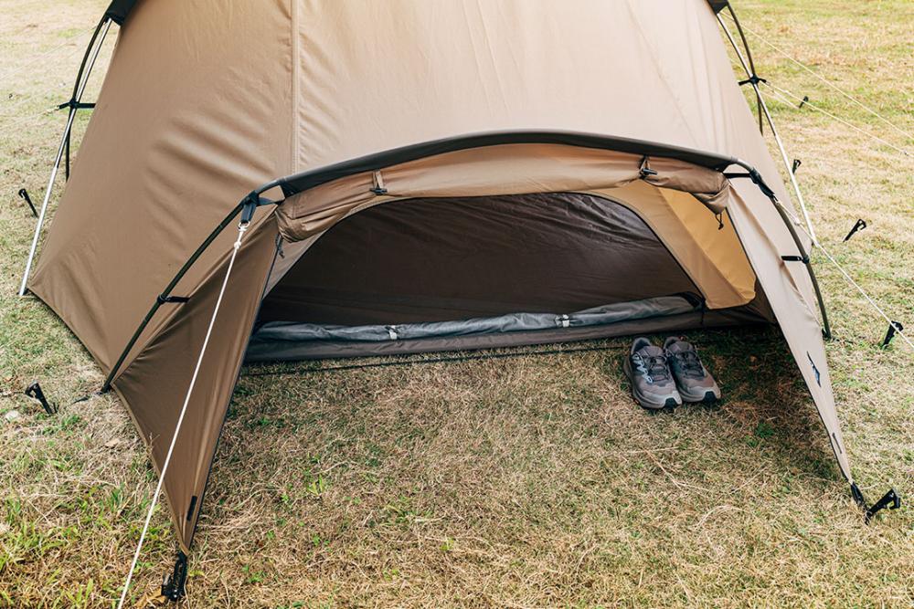 从后方也可以自由进出。内帐采用向内倾斜式设计,即使开放外帐,雨水也不易渗入。也可以作为放置鞋子的小空间。
