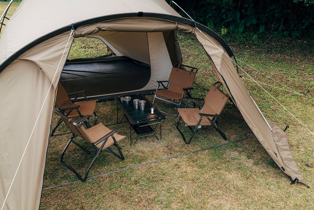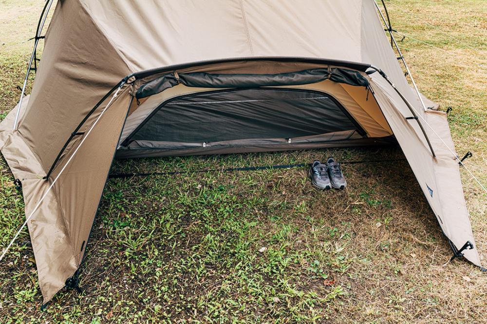 从后方也可以自由进出。内帐采用向内倾斜式设计,即使开放外帐,雨水也不易渗入。也可以作为放置鞋子的空间。