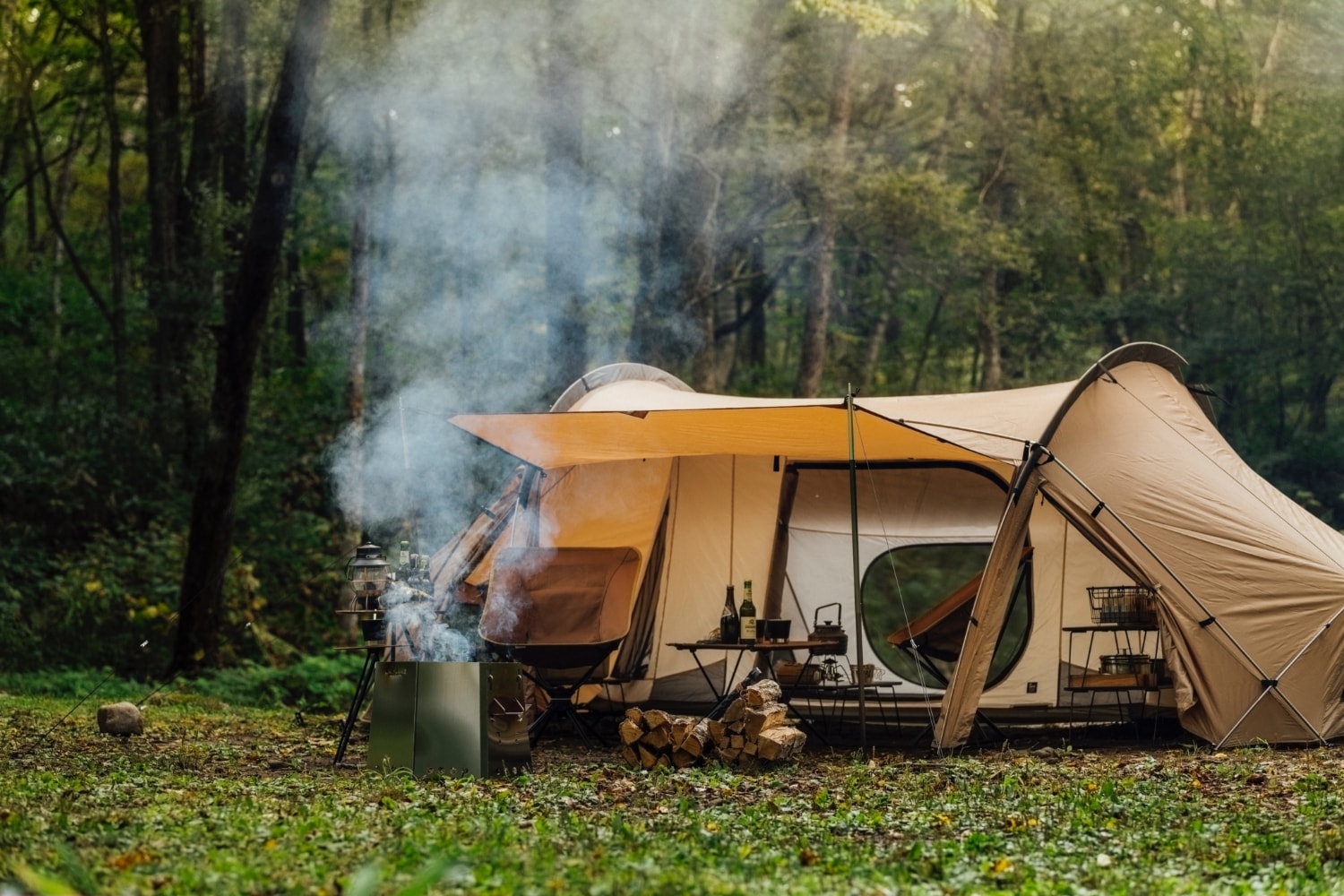 将前后的门厅及两侧门帘全部卷起之后,可以在开放感十足的空间内尽享自然美景。同时前厅的活动区也有充分的空间能够放置双人桌椅等露营用具。