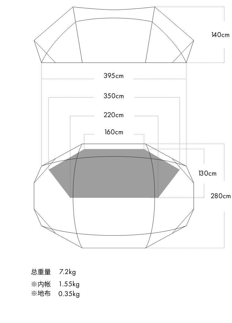 帳壁:20D抗撕裂聚酯纖維 / 帳底:70D尼龍塔夫綢?PU涂層(耐水壓1,500mm)