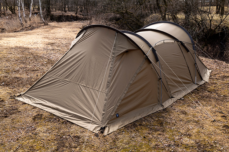 供2-3人使用的中型一室一廳帳。獨(dú)特的橋桿設(shè)計(jì)使得帳篷整體抗風(fēng)性大幅增加。