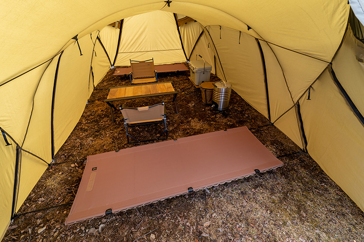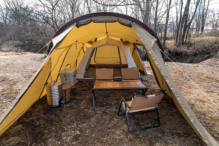 在放入桌椅等露营用具后,2-3人使用时可拥有宽敞的帐内活动空间。适合装备精简型的露营用户。