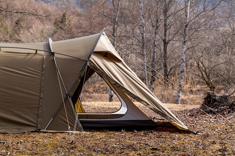 外帐的出入口与内帐出入口相互连通,从侧面也可以自由出入。若将内帐出入口的对侧打开,则可以使内帐更加通风。