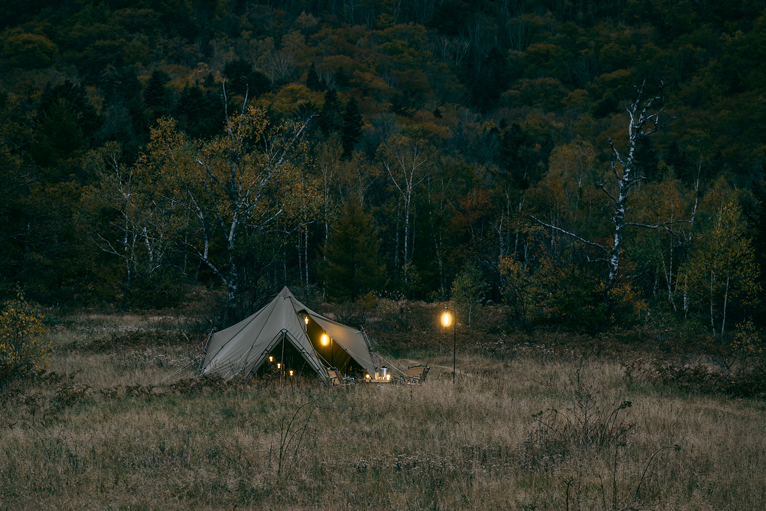 帐内即使放置相应人数的桌椅和其他物品,也可以供四人宽敞使用。若减少放置的物品大小及调整摆放位置,则最大可以同时容纳六人使用。