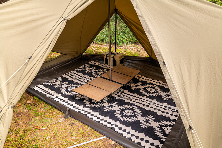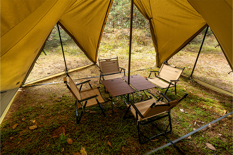 帐底周围配备防风裙,能够防止外部的冷空气进入。为了防止与地面接触的部分被轻易弄脏,防风裙采用易清洁的聚酯纤维材质。