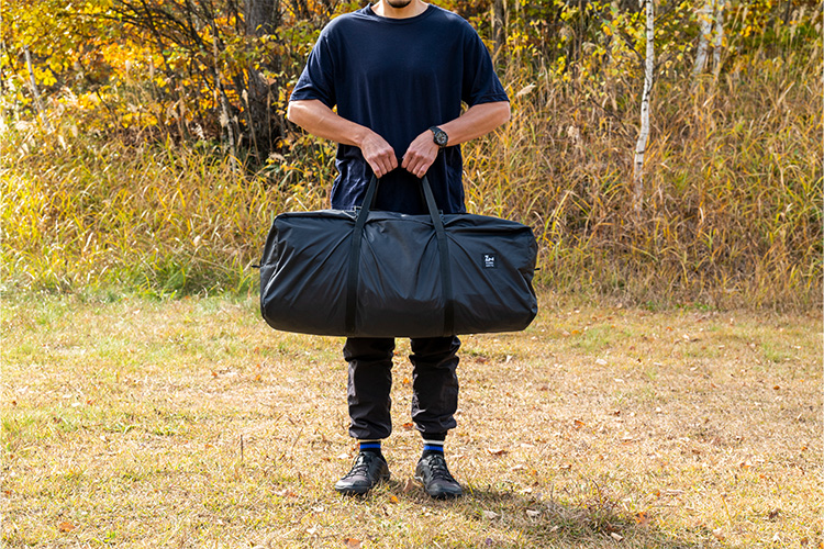 包装袋可以将帐杆与帐体全部收纳进去。为了与化纤材质的版本进行区分,TC版本的收纳包装颜色为黑色。